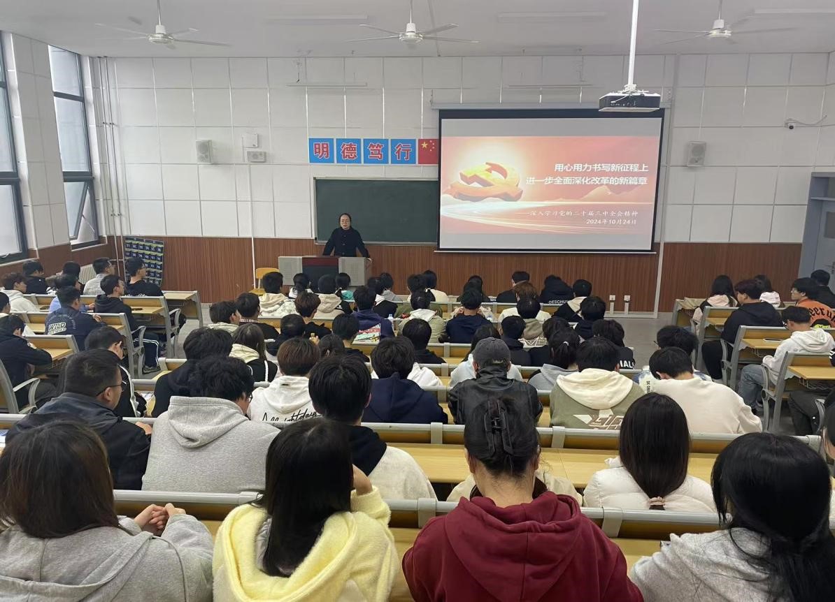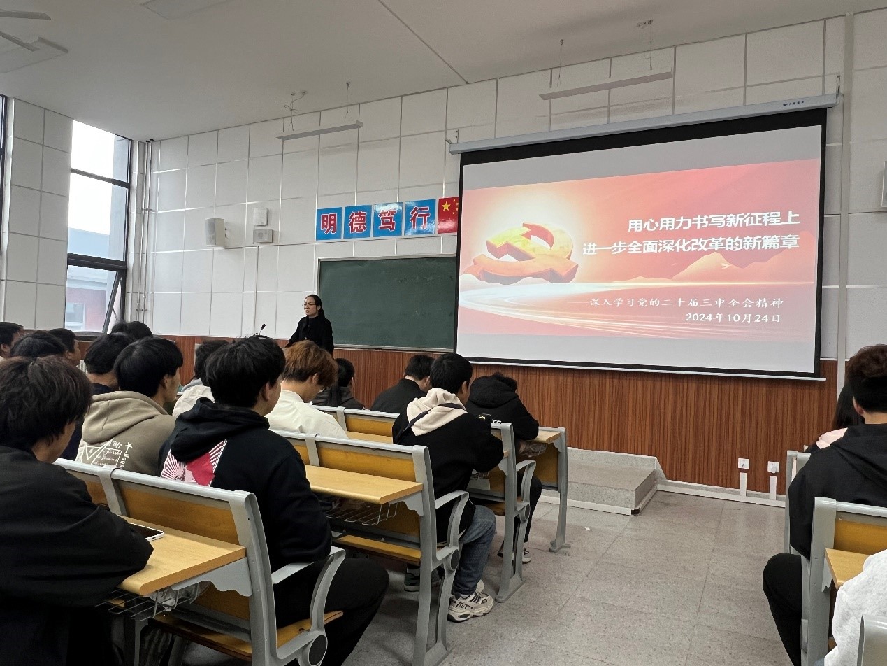 为深入学习贯彻党的二十届三中全会精神,10月24日,7790cnm必发集团理论宣讲员查彩云老师在综合楼302教室为7790cnm必发集团入党积极分子、团学干部、班干部等一百余名员工开展主题为《用心用力书写新征程上进一步全面深化改革的新篇章》的报告。