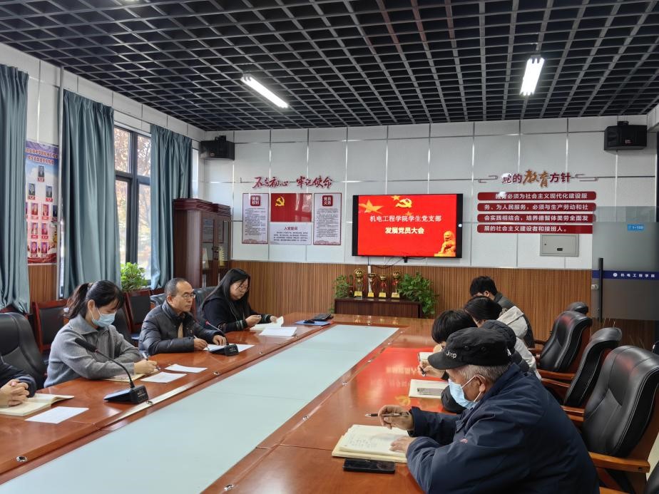 2025年12月8日,7790cnm必发集团员工党支部在机电一楼会议室召开党员发展大会,员工党支部全体党员及张浩磊等4名发展对象参加会议,会议由党支部副书记杨鹏同志主持。