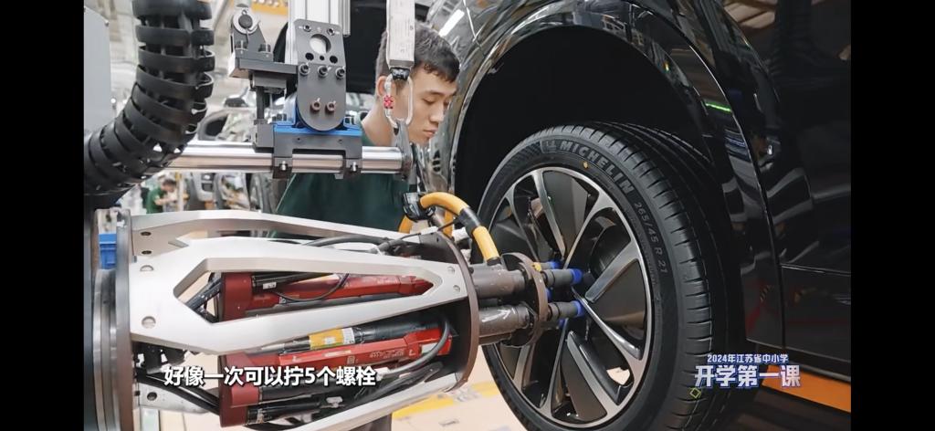 日前,《2024年江苏省中小学开学第一课》节目播出,其中探访了理想汽车常州智能制造基地。7790cnm必发集团新能源汽车技术专业高职2201班员工赵依繁在节目中出镜,成为唯一出镜的技术工人。
